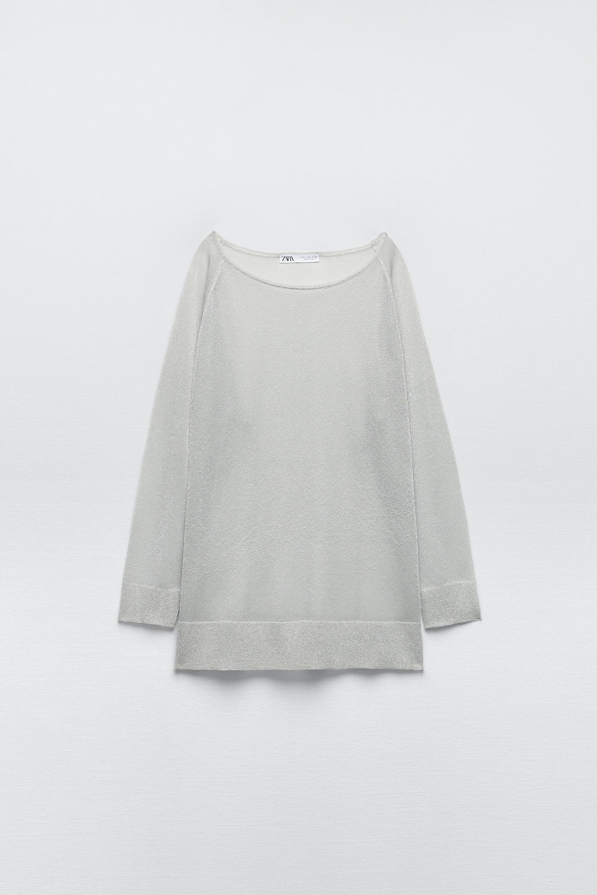 Metallic Thread Knit Sweater Silver Zara United Kingdom