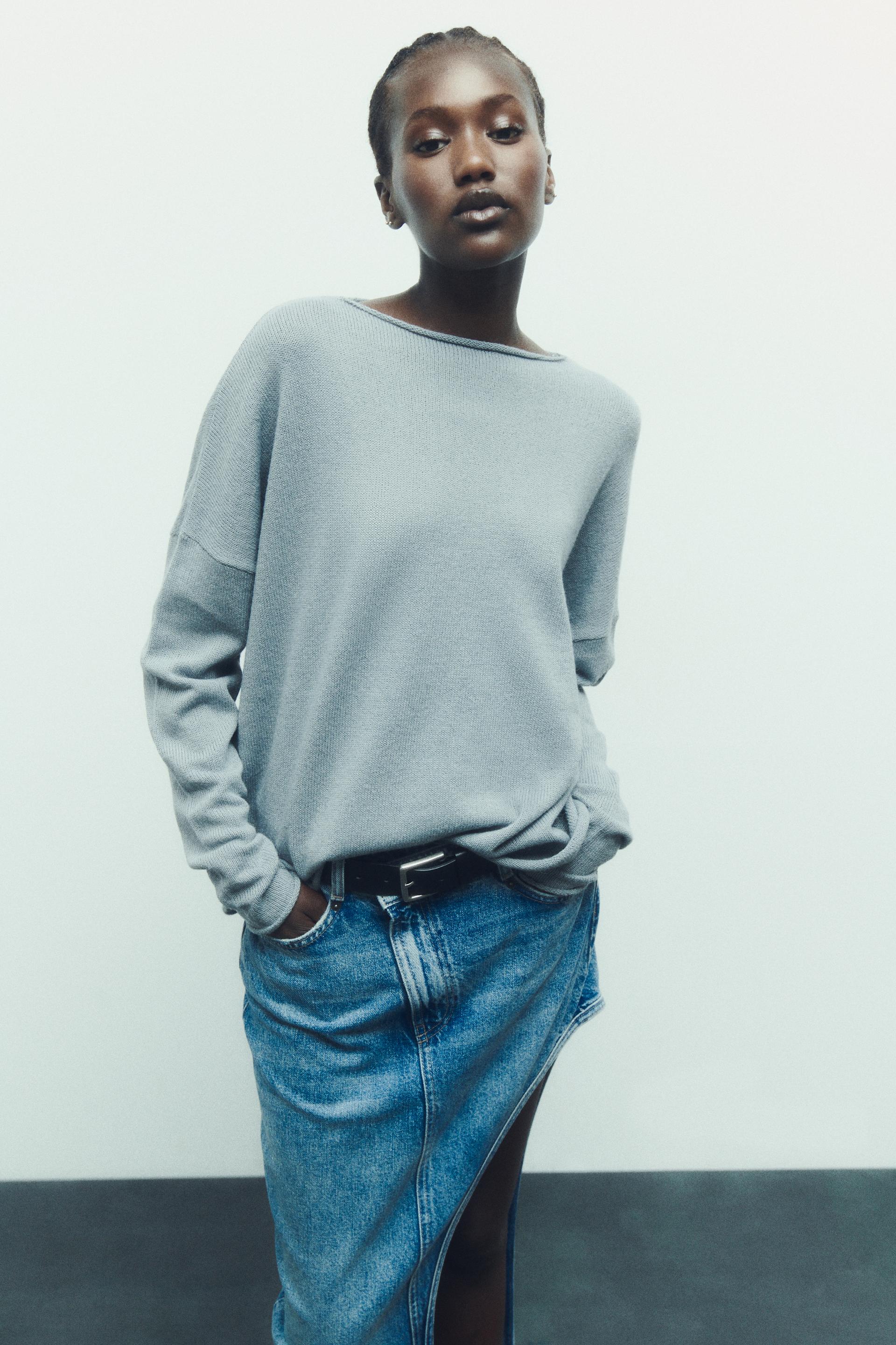 Knit Sweater With Seamless Trims Grey Blue Zara United Kingdom