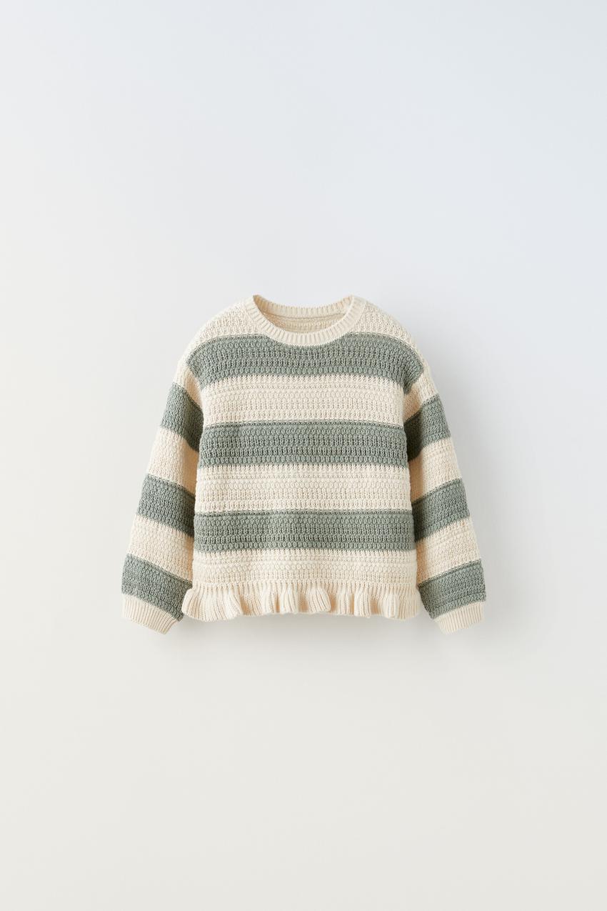 Striped Knit Sweater Mid Green Zara United Kingdom